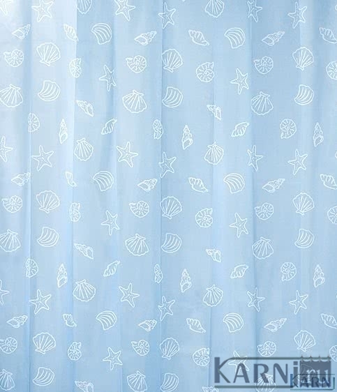 Занавеска для ванны с 12 металлическими люверсами под кольца. Штора обработана специальной пропиткой, отталкивающей воду. Внизу по всей длине вшит шнур-утяжелитель.